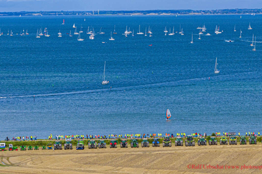 The initiators of the Free Baltic Sea Schleswig-Holstein initiative, together with other associations from the tourism, water sports, fishing and agricultural sectors, had called on people to come to Gelting Bay on Saturday to send a signal against the state government's national park plans. According to the organisers, around 1000 windsurfers, SUPers, kiters, sailors and other water sports enthusiasts gathered in front of the Gelting and Wackerballig marinas. At the same time, numerous farmers positioned their tractors directly on the shore and formed a chain around 250 metres long.