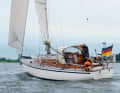 Even on today's October day on the Weser, after setting sail in a force five southerly wind against the tidal current, the going is somewhat rough. With a single reefed main and slightly reefed genoa, however, the new owner has his "Aquamare" under control single-handed without any problems. He can enjoy the sporty end-of-season cruise to the full.