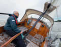 The boat, which the owner henceforth refers to as the "Biga 282" and the shipyard as the "Biga 262 Plus", is designed to be single-handed. The senior shipyard manager himself builds a beautiful tiller extension in the curved shape of the tiller, and "Aquamare" is fitted with an autopilot.