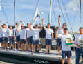 Die Segler auf der Fastnet-Siegerin “Caro” waren: William Parker, Wade Morgan, Ryan Godfrey, Justin Ferris, Jono Swain, James Paterson, Harry Hall, Cian Guilfoyle, Andrew McCorquodale, Andy Green, Adrian Stead und Eigner Max Klink. Geschlagen geben mussten sich im Kampf um den berechneten IRC-Gesamtsieg und den begehrten Fastnet Challenge Cup mit der zweitplatzierten polnischen “Wind Whisper” und dem unter US-Flagge segelnden Team Jajo zwei VO65-Yachten, die gerade noch im Ocean Race Sprint Cup aktiv waren.