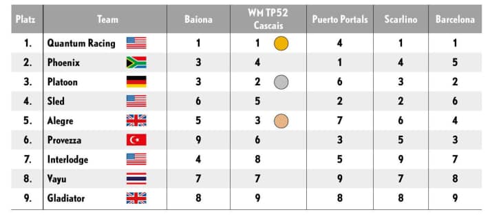 Die Saisonbesten fallen nicht nur farblich auf. Die „Quantum“-Segler waren im Jubiläumsjahr wieder ganz oben, gewannen im Sommer ihren fünften WM-Titel vor „Platoon“ und der britischen „Alegre“. Auch beim Leichtwind-Finale in Barcelona gibt es für die Konkurrenz nur ein kleines Quantum Trost: Die Amerikaner, dessen Rennstallbesitzer Doug DeVos und Taktiker Terry Hutchinson zudem zu den Motoren von America’s-Cup-Herausforderer American Magic zählen, gewinnen auch die fünfte und letzte Regatta des Jahres. Und damit die Saisonmeisterschaft.